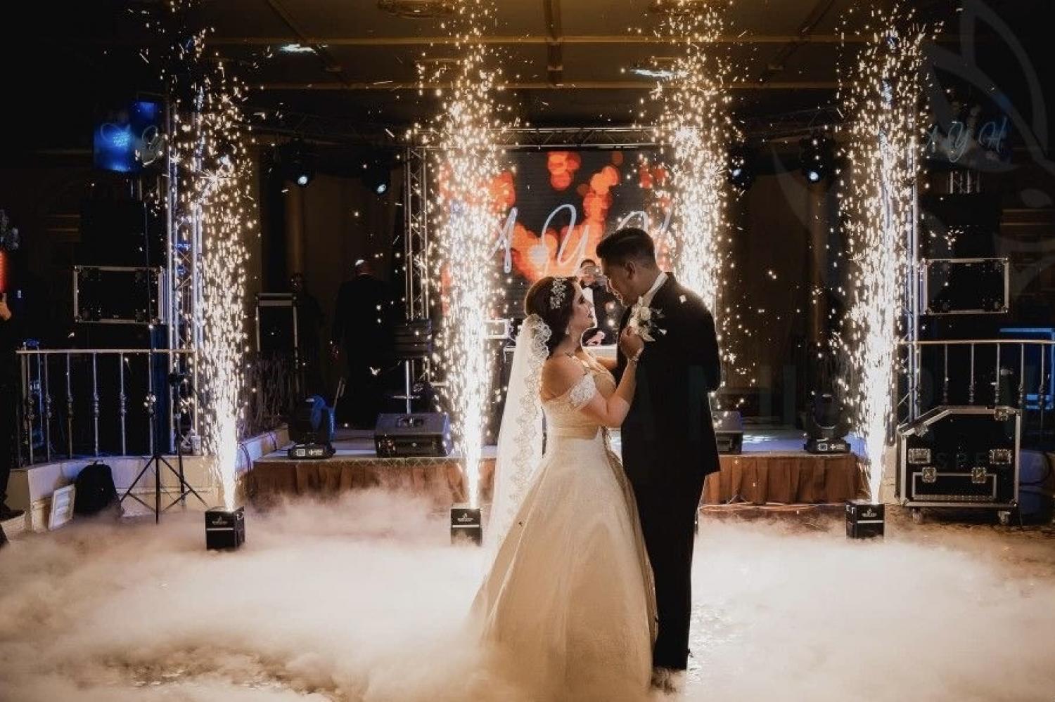 Ideales para entradas, valses o momentos especiales, estas máquinas generan una lluvia de destellos que simulan fuegos artificiales, sin humo, sin calor y completamente seguras para interiores.
